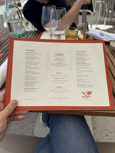 When asked for a recommendation, the waiter said “everything” — which means nothing. Our dinner was a series of letdowns: tuna (0/10), fish with spinach (2/10, unbearably salty), tomato tart (4/10), octopus (5/10), and langoustines (7/10). Nothing tasted right, nothing felt worth the price (168 euro bill).