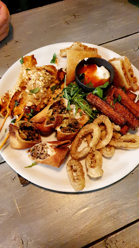 The food arrived a little while later and we were appalled. The serving size compared to the photo online was almost like we had mistakenly ordered the wrong item. The food itself was significantly bland, and tasted like everything was gathered from the freezer section of the local supermarket and fried up and thrown on the plate. The calamari was rubbery to the extent of near inedible, the chimichangas were extremely tasteless and the polenta fries were outright disgusting. Not even the below average sauces could add any flavour to this platter. Lucky they make you pay for the food when you order it, otherwise we wouldve gotten up and simply walked off.