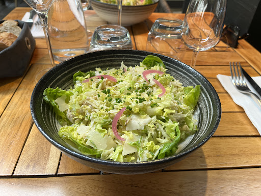 Read more4,4/5?! C’est une blague!! Ce sont des faux avis, ce n’est pas possible… Déjeuner ce jour. Nous demandons un kir pétillant. Le serveur nous presse pour prendre notre commande, y compris le vin. Nous commandons donc le menu du jour avec nos 2 verres de vin. Nos kirs arrivent… très bons. Au bout de 10 minutes, le serveur revient pour nous dire qu’il n’y a plus de menu du jour. Pas d’excuse. Grosse déception. Nous commandons donc deux salades cesar: la blague du siècle!!! Un petit bol de salade, aucune sauce, 3 mini bouts de parmesan, du poulet fin comme du papier à cigarette, 18€. Nous attendons nos verres de vin que le serveur nous avait pressé de commander. Nous le cherchons désespérément du regard. Au bout de 5 minutes nous arrivons à capter son attention. Nous rappelons le serveur car il manque vraisemblablement qqc à cette salade: ah oui le maître restaurateur a oublié les croûtons. Et la notre serveur a littéralement disparu, plus personne n’est venu nous voir et au moment de payer on nous offre le kir mais sans aucune explication ni excuse. 18€ pour un mini bol de salade sèche… du vol. Service lamentable. Il faut vraiment enlever la plaque « maître restaurateur », cela fait honte à...