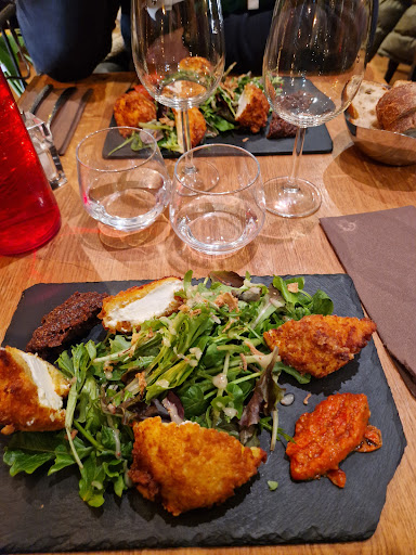 Cet établissement est l'un des premiers que je teste à Niort, sur la place de la Brèche. Très accessible depuis le parking de la Brèche, il bénéficie d'une belle exposition sur la rue principale. Son accueil située au RDC s'ouvre sur le bar et la table des prises des réservations. Nous sommes accueillis par une serveuse à qui nous demandons à être installés dans un coin discret pour ne pas être dérangés par trop de bruit. Nous sommes ensuite servis par un serveur très professionnel qui prend notre commande. Nous sommes arrivés un peu tard pour un mercredi soir, les cuisines allaient fermer et c'est pour cela que nous avons été un peu pressés de choisir. Mais c'est bien normal. Au final nous avons commandé 2 menus entrée+plat+dessert à 26€ (prix imbattables ! surtout que la carte de ce menus offre un large choix). 2 chabichous panés en entrée : plat très copieux, avec sa salade bien assaisonnée et 2 confits. 1 burger signature : la aussi copieux, avec des ingrédients de qualité. 1 pâtes aux deux saumons : essentiellement du saumon fumé, copieux. Attention les pâtes m'ont semblées trop cuites car collantes. 1 café gourmand : très généreux. 1 tiramisu : simple mais efficace ! pas trop lourd et recette fidèle. 1 50cl de Chinon rouge qui était vraiment très bon. S'est parfaitement marié avec le repas.