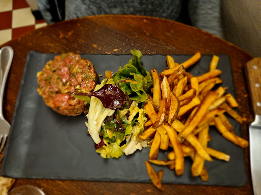 Read moreDîner à deux. Choix uniquement à la carte, pas de menu. Gravlax de lieu jaune en entrée : petite portion, bien parfumé, mais un peu sec, zeste d'agrumes imperceptible. Le travers de porc manque un peu de fondant, sa mousseline de panais est très discrète et pourquoi la noisette ? Le tartare de bœuf est en revanche excellent, assaisonnement parfait, frites maison de haute volée. Toujours est-il que le restaurant est loin de mériter un Bib Gourmand, qu'il n'a d'ailleurs plus, mais il continue de surfer sur cette réputation pour justifier ses tarifs. Les vins sont malheureusement tous naturels, le Vouvray est très intéressant, mais le côtes du Rhône sans intérêt. Pourquoi ne plus proposer le Richaud ? Le service a été trop long, c'est toujours désagréable de se voir servir après d'autres clients ayant commandé après nous. De plus, un verre supplémentaire nous a été facturé, nous ne nous en sommes rendu compte qu'après. Nous aurions dû être plus vigilants. L'ambiance est plutôt familiale et pas...
