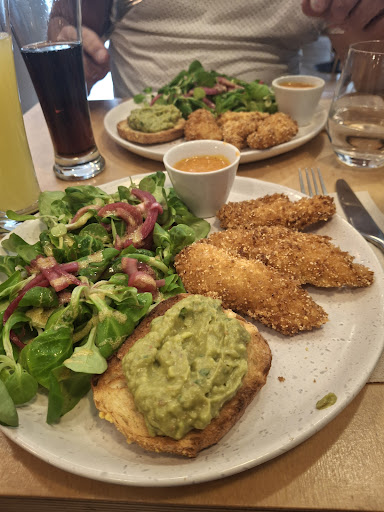 Read moreTrès beau lieu avec une ambiance très conviviale. C’est trois amis qui tiennent ce restaurant et je trouve que cela donne encore plus de charme et d’histoire. Très peu de choix sur la carte, pour ma part je trouve cela mieux car on sait encore plus que c’est tout fait maison. Mais ça peut être à double tranchant si rien ne nous plaît. Le seule point inconvénient c’est le prix pour le plat, c’est un peu cher pour la quantité dans l’assiette, 12,50 pour l’assiette avec la burata et 13,50 pour celle de lentilles. Mais néanmoins les déserts sont généreux, certains plats sont moins généreux que d’autres, c’est à voir. Je conseille néanmoins de l’essayer et d’y aller pour se faire son propre avis. On a pu partir avec la bouteille d’eau qu’on avait acheté et pas fini donc assez sympa de leur part. Pain à volonté aussi (pas fait maison malheureusement mais n’allons pas trop...