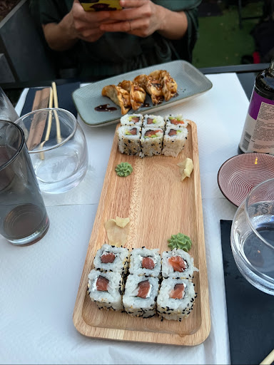 Read moreTrĂšs dĂ©cevant. Jâavais eu de bons Ă©chos sur ce restaurant japonais, mais aprĂšs avoir testĂ© je ne comprends pas vraiment⊠Les gyozas sont sympas et bien croustillants, mais je me demande sâils sont fait-maison. Les sushis Ă©taient trĂšs banals, mais surtout certains (enroulĂ©s dans une feuille de riz) collaient entre eux et sur lâassiette. Nous avons dĂ» demander une fourchette (!) pour essayer de les manger sans quâils se dĂ©litent mais ce nâĂ©tait pas suffisant, tout partait en lambeaux ⊠Jamais eu une expĂ©rience comme ça ! Nous avons pris des mochis en dessert : quelle surprise dâavoir sur lâassiette des mochis minuscules et issus des boĂźtes industrielles que lâon retrouve dans nâimporte quel supermarché⊠mais Ă un prix dĂ©raisonnable. Le service est bien, mais les poufs qui tournent sur eux-mĂȘmes ne sont pas...