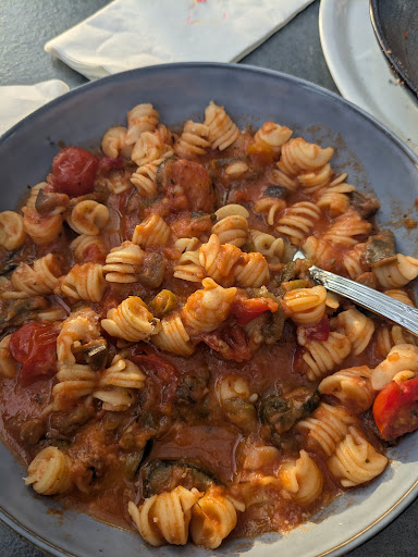 ArrivĂ©s Ă 7 pour dĂ©jeuner un midi de juillet, on nous accueille sans difficultĂ©. Une fois assis, la serveuse nous explique quâil nây a plus que des pĂątes. DĂ©jĂ , il me semble que câest un peux lĂ©ger mais nous sommes pressĂ©s donc nous acceptons cette situation . La commande est prise au bout de 15 min et lĂ on nous explique que sur les 3 sortes de pĂątes Ă la carte il nâen reste quâune. Ă nouveau la situation est pĂ©nible mais encore une fois nous acceptons sans broncher. Et puis sâen suit une longue attente. Au bout de 50 min nous sollicitons la serveuse qui nous indique quâelle va presser la cuisine. Elle revient au bout de 5 minutes en nous expliquant que lâune des sauces choisie nâest plus disponible. Je comprends quâau bout de 50 min le cuisinier sâintĂ©resse seulement Ă nos assiettes de pĂątes !!! Je comprends aussi que dans ce restaurant on a le choix entre pĂątes bolognaise et pĂątes carbonara et câest tout! Pas le choix, nous acceptons ENCORE une fois et 5 min plus tard nos plats arrivent. LĂ câest lâapothĂ©ose, je pense que nous avons lâĂ©quivalent de 4 fourchettes de pĂątes chacun! Sans exagĂ©ration! TrĂšs contrariĂ©s nous avalons nos 4 bouchĂ©es et partons. Au moment de payer jâindique Ă lâhomme au bar que cette situation est inadmissible. Nous avons 4 enfants qui sortent de table affamĂ©s et nous avons attendu 1 heure pour nous faire imposer notre plat finalement. Il appelle la serveuse qui lui confirme que les portions Ă©taient petites en raison de lâutilisation dâassiettes particuliĂšres en ce jour. Mais quelle blague!!!! đ€Ź Fuyez malheureux! Ou alors acceptez de payer 15 euros les 4 bouchĂ©es de pĂątes bolognaises. Câest tout simplement une Ă©norme...