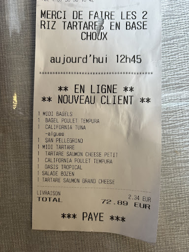 Read morePremiĂšre expĂ©rience dans ce restaurant et je ne reviendrai plus ! ArrivĂ© avec mon fils vers 21h25, je regarde la belle carte, je souhaite Ă©ventuellement une petite salade d'accompagnement, je demande au serveur venu nous voir, oĂč sont les salades, ils me rĂ©pond un peu brutalement " lĂ oĂč il y a les salades" et me dirige vers les salades complĂštes Ă 15 ou 20 euros alors que je voulais voir les petites salades de choux ou autre. Puis il m'amĂšne les plats finalement commandĂ©s. Pour moi un bagel mix, il me marche sur le pied au passage ( un grand costaud...) mais cette fois s'excuse. Il n'y a pas de couteau pour couper le bagel, je dois en demander un....le pain du bagel est un peu rassi et dur, la charcuterie dans le bagel est tiĂšde, pas d'impression de fraĂźcheur. Petite laitue dĂ©coupĂ©e autour....sans la moindre sauce salade, juste des sauces chinoises sucrĂ©es ou salĂ©es, rien Ă voir.... A la fin pour payer je me rends au comptoir, j'attends, me fait un peu bousculer par un serveur ( le mĂȘme) aucune dĂ©licatesse, pas un " excusez-moi " durant ses nombreux allers retours. Enfin mon tour pour payer, je dis mon insatisfaction et commence Ă l'expliciter au caissier qui me paraĂźt aimable, hĂ©las il encaisse deux jeunes venus aprĂšs moi, et prenant leur temps pour payer en liquide, personne ne se rend compte de cette impolitesse. Plus jamais ce restau . J'ai mes habitudes dans un autre de cette mĂȘme rue, et Ă©galement chez " aux dĂ©lices de Charentong". A...