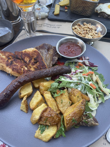 Nous avons commandé le plat du jour : un mixte grill. Nous avons demandé ce qu'il y avait comme viande. Il nous a été répondu 1 merguez et 2 viandes rouges. Dans l'assiette il y avait 1 merguez et 1 blanc de poulet. Les 2 trop cuits et donc plutôt secs. Nous avons indiqué au serveur que ça ne correspondait pas à ce qu'il nous avait indiqué. Sa réponse : "ah bah je me suis trompé "