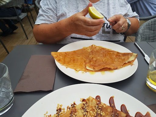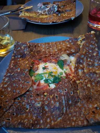 Read moreOn appelle à 21h30 pour réserver une table de trois pour 20 minutes plus tard, on nous réponds pas de problème on vous attends sans même prendre un nom. Arrivés au restaurant, dont l'accès se fait par une porte dont la poignée a ete positionnée pour passe partout (avec tout le respect que je dois aux personnes de petites tailles, une poignée à 70 cm du sol c'est pas possible), on nous demande si on a réservé et a quel nom ...... Mais wtf ?!?!? Néanmoins on nous trouve une table, l'honneur est sauf !!! Passé ce désagrément attaquons le principal : la cuisine. Commande de deux crêpes salés et une salade. Pour faire court : c'était prêt en 3 minutes (bizarre), ça a été servi tiède, un pauvre morceau pas cuit de fromage pose nonchalamment en plein milieu d une galette de sarrasin fadasse le tout baignant dans une pseudo sauce au vin blanc. Au passage j'oubliais de préciser que nous commandons une bouteille de 50 cl de vin (j'insiste sur le fait qu'il y avait marqué bouteille sur la carte), on nous amène une 75 cl, je le fais remarquer a la très aimable serveuse/chef serveuse qui sans dire un mot nous fait apporter ....... Un pichet de vin !!! En parlant de cette chef serveuse je vous fait grâce des nombreux détails vous permettant d'envisager toute la vulgarité dont celle ci fait preuve tant dans l'habillement que dans le comportement. Finissons tout ça avec un dessert crêpe Nutella chantilly sans aucun intérêt car on cherchait le Nutella contrairement à la chantilly qui, quant à elle, provient de la même bombe a chantilly qu'on utilise tous à la maison. Fin mot de l'histoire : c'était notre deuxième passage dans cet établissement et il s'agit du dernier tant il n'y a aucun intérêt à y aller (hors mis pour la...