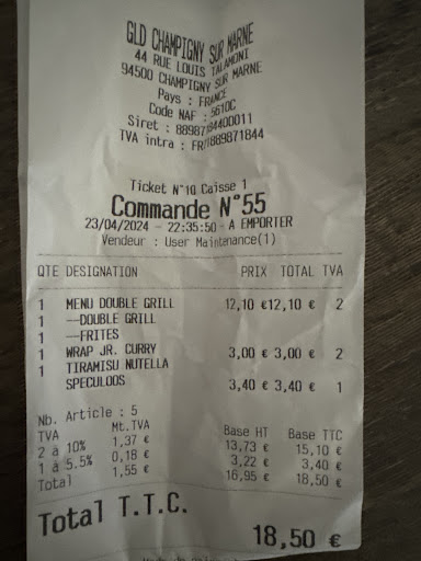 Read moreSe soir nous somme venu mangé moi et mon mari et ma fille les table toutes collante nos manche reste collé à la table madame qui prend les commandes même pas un sourire quand tu aime pas ton travaille tu laisse ta place à quelqu'un qui aimerait être a sa place et en plus de sa elle est sensé nous ramène les plateaux a la table a bien non elle va se cassé un doigt on a du aller les chercher au comptoir le service hygiène ferait pas mal de faire un tour sur place et les patron aussi d'ailleurs et qui reçoit son équipe car il a des chose qui tourne bizarre dedans et pour temp nous somme des habitués à mangé sur place mes la sa...