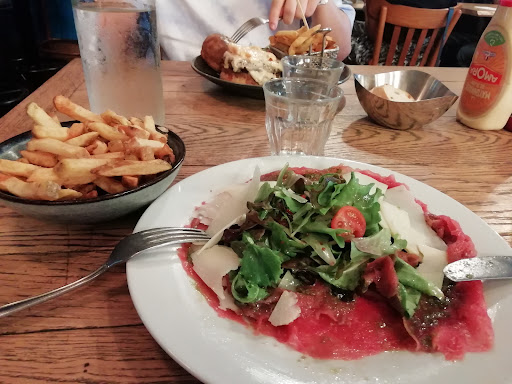 Nous posons la question si ce soir retransmission du Match France Italie réponse OUI ...on réserve une table ( il est a peu près 18:30)...lorsque nous arrivons vers 20:30 il n' y a plus notre table ...bon nous reposons la question car l'écran est éteint le jeune gérant nous informe que:'' oui retransmission ... On s installe et commande ...et vers 21 h écran s allume mais pas de son on demande poliment le son pour les Hymnes ..il lache un sourire et dis NON c est pas de tradition dans ce bar ..les images suffisent...