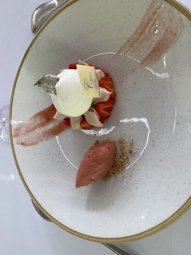 Read moreJ'ai réservé au sein de cet établissement pour l'anniversaire de mon homme. Et juste un mot whaaaouuuu! Ce restaurant a été à la hauteur de mes exigences. Le cadre est reposant calme et agréable. Aucune difficulté pour se garer. L'environnement est reposant, on adore. La décoration à la fois chic et sorbre un mix parfait entre le moderne et l'ancien. Le personnel rien à signaler adorable aimable serviable prévenant digne de leur étoile sincèrement. Les saveurs sont bien travaillées. Nous avons opté pour une formule 4 services et pour ma part arrivé au plat j'en avais déjà eu assez, il faut juste savoir apprécier la bonne gastronomie. Mon homme a particulièrement aimé les suggestions de vin proposées au gré de notre parcours culinaire. Pour ma part, ne buvant d'alcool mon virgin cocktail était parfait pas trop sucrée comme j'aime. Les mots me manquent car cet établissement m'a donné beaucoup d'émotion. Pour nous 2 nous en avons eu pour environ 200e à ma grande surprise! Nous y retournerons sans hésiter, ce genre d'adresse mérite d'être connu et plébiscité clairement. Mention +++ pour les serveurs, ne vous fier pas à leurs carrures impressionnantes se sont des nounours vraiment soucieux de votre bien-être. Sinon le seul petit point négatif, le service est légèrement trop rapide, mais on en tiens pas rigueur. A...
