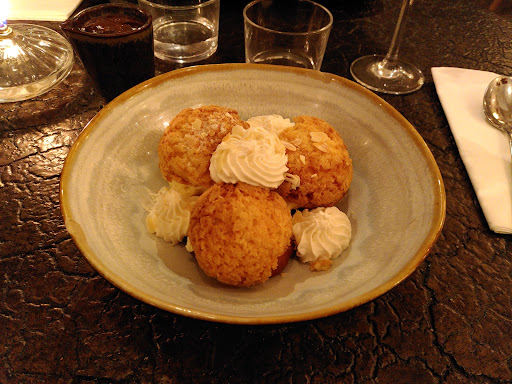 Read moreSitué à quelques minutes à pied du RER. La salle est très belle, très cosy, très chaleureuse avec beaucoup de bois. L'ambiance est calme et les tables très bien disposées. Idéal entre ami.e.s ou en couple. La carte est sympathique, beaucoup de viandes et de poissons proposés dans des versions bistronomiques. Quelques entrées, deux plats de pâtes. Pas grand chose pour les végétariens, encore moins pour les vegans. Dommage. Des pâtes uniquement aux champignons. Dommage. Les desserts sont nases dans l'idée : gaufre? pain perdu? Plutôt pour le goûter. Bon, ok, il y a une tatin et des profiteroles.