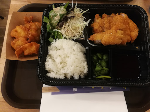 Read moreLe cadre est convivial, étroit mais chaleureux. Karaages traditionnels, fondant, goûteux. Une expérience gustative et olfactive satisfaisante. De plus, j'éprouve la nécessité d'évoquer l'attitude démesurément chaleureuse des restaurateurs, une touche amicale, originale et par conséquent, surprenante et notable. Néanmoins, il me semble indispensable de souligner que le porc et dépourvu d'humidité, il est beaucoup trop asséché et la sauce tonkatsu n'est malheureusement pas suffisante. Cependant, cette derniÚre, de part son acidité et son cÎté fruité confÚre une saveur umami absolument fabuleuse au plat, et permet indubitablement de maintenir la cohésion du plat en générant un contraste notable entre le fondant des karaages et l'agressivité de cette sauce ! Enfin, je trouve regrettable de ne pas proposer des jus de fruits (abricot) en boisson, cela apporterait une touche de fraßcheur au plat, et la beta carotÚne des abricots, faciliterait la digestion et son assimilation serait facilitée par la graisse ingérée. Pour conclure, un ensemble plutÎt satisfaisant et un bon rapport qualité/prix.