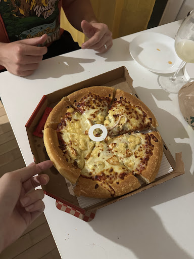 Comme dans beaucoup de points de vente pizza hut , les pizzas ont tendance à sortir du convoyeur trop cuites voir partiellement brûlées ou complètement mais c'est surtout que ma pizza ne contenait ni pepperoni ni champignons . Le boeuf qui est normalement en boulette chez pizza hut n'était surtout que majoritairement des miettes à la qualité médiocre , de la carne à vrai dire . Les oignions épais et pas cuits puisque assemblés tout en dessous .
