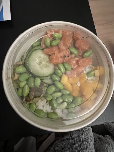 Ma femme a voulu gouter leurs poké "chauds" puisque sur le papier c'est une proposition assez originale. En réalité il est arrivé à peine tiède. A notre demande ils l'ont réchauffé mais il était encore tiède malgré tout. La promesse n'est pas remplie. De mon côté mon poké froid était assez bon dans l'ensemble, sauf en ce qui concerne le riz qui n'était pas bien cuit (alors qu'il est au coeur du plat tout de même). Il avait un côté un peu dur / caoutchouteux, comme du riz qu'on a préparé à l'avance et qui a passé un peu trop de temps au réfrigérateur.