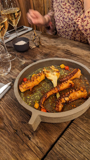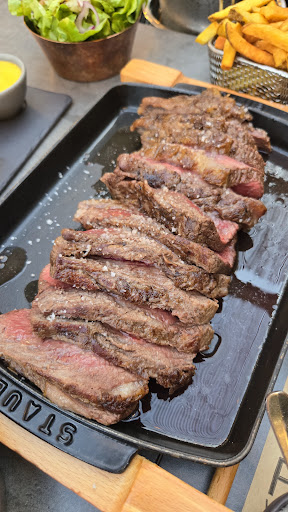 Read moreDégoutée, accueil inexistant limite qui te met mal à l'aise, nous étions 4 et nous avons tous eu cette mauvaise sensation. Le type derrière son comptoir, on se demande a quoi il sert, à peine lève t-il le nez pour seconder sa serveuse déjà occupée a prendre une commande. Et puisqu'on parle d'elle, d'une froideur....celle de ceux qui ne font pas ce métier par passion...aucunes vraies explications de la carte, ni de celle des vins...vu les prix pratiqués on s'attend au minimum à quelques conseils, mais non....Les viandes oui sont pas mauvaises mais les accompagnements franchement moyens (du blé, des patates au four....bon....) quant au troisième serveur lui n'hésitera pas à nous faire passer pour des cons, en nous ramenant un dessert que nous n'avions pas commandé en disant : " mais si mais si, on va y aller par déduction hein...ça va vous revenir" ...bah non mec c toi qui t'es trompé de table....bref c'était pour les 71 ans de ma mère, j'en garde vraiment pas un bon souvenir et vous n'êtes pas près de m'y revoir, ni de vous faire de la pub ! n'est pas restaurateur qui veut, c'est un métier dans lequel on prend mais faut aussi savoir donner .... enfin petite cerise sur le paquet de m.... aucun "au...
