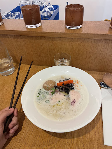 Read moreAccogliente ristorante di ramen che rivisita la cucina giapponese con un tocco di gusto francese. Il locale è molto confortevole e il menù è limitato a pochi piatti molto curati e delizioso con un ottimo rapporto qualità -prezzo. Abbiamo avuto modo di assaggiare due diversi tipi di ramen, un donburi, i gyoza e i takoyaki, tutti estremamente buoni. Per concludere il pasto, il locale offre anche una vasta selezione di sakè e whisky giapponesi di ottima qualità. La proprietaria è squisita, il personale è giovane, cortese, ma ancora un po' inesperto. Nel complesso la nostra è stata un esperienza super positiva e speriamo di avere l'occasione di...