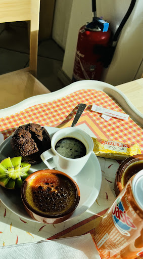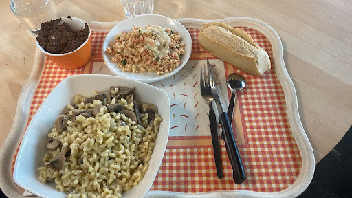Un fonctionnement classique de cafétéria: vous vous servez, payez, vous asseyez, mangez votre entrée, vous levez pour aller chercher votre plat chaud, puis la glace, puis le café...