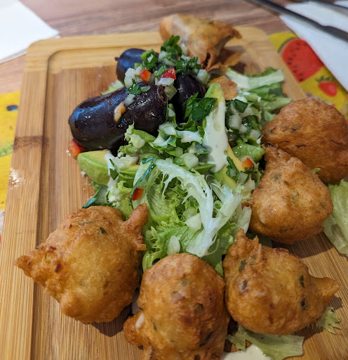 Read moreComment dire... ce lieu est un vrai voyage culinaire. De passage sur la région pour le boulot le choix des restaurants était assez restreint.. nous avons réservé pour 9 personnes à la dernière minute. L'accueil accueillant; le repas un délice !! On a voyagé ds les îles !! Tout est fait maison ; à la minute ! C'est frais, c'est épicé, c'est coloré mais surtout c'est BON! Alors prenez votre temps, appréciez les samoussas au boeuf, les bouchons réunionnais, les accras, le boudin noir, le Colombo, le rougail saucisses et autres mets! On y retourne semaine prochaine! Merci pour votre gentillesse mais surtout pour cette fraîcheur et qualité !!! Venez pousser la porte de ce restaurant les yeux fermés ! Le prix est...