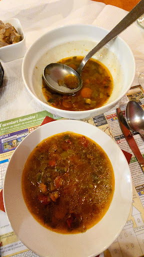 Read moreÀ ne surtout pas manquer ! Il est exceptionnel de trouver une telle qualité de produits. Tout est frais, local et très bien cuisiné. Un rapport qualité prix imbattable. Nous avons pris un trio de foie gras et une salade périgourdine, nous nous sommes régalés. Détail exotique (pour moi) qui a fini de me convaincre, les légumes qui accompagnent le trio lorsqu'il est pris en plat principal : un trio de pommes de terre sautées, endives braisées (dans de la graisse de canard...) et des châtaignes ; un enchantement ! Ne surtout pas rater les figues fraîches pochées au sirop maison avec une glace rhum raisin. Fabuleux Les gens qui habitent dans le coin ont beaucoup de chance d'avoir une telle adresse...