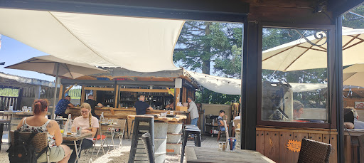 L endroit est super sympa et convivial esprit un peu guinguette/bar à bière bon on va dire que c est plutôt un bar a burgers on est venu pour ça de toute façon ! Arrivé a 13h il y avait un peu de monde mais ambiance pas si chaleureuse que ça même si la musique rock résonne sur ce lieu en permanence beaucoup d attente pour qu'on nous dise où s installer et manger .... Idem pour avoir la carte ( bon la serveuse est toute seule !) mais on a été servi très rapidement après la prise de notre commande J'ai donc commandé un hamburger supplément bacon 🥓 (fallait le trouver c était pas très généreux) et j'ai eu l impression que c était du burger monté très vite fais avec une viande correct mais assemblé avc du tout près idem pour la salade qui a l air d être de la salade en sachet sauce mayo curry je pense toute prête aussi peu de goût et frites maisons plutôt bonnes avec un supplément cheddar mais pareil portion pas très généreuse mais ça reste correct et tout ça pour la modique somme d environ 15€ un petit peu excessif pour le contenu a mon gout C est loin d être le meilleurs hamburger que j'ai eu a mangé mais loin d être le plus mauvais non plus ça reste correct et bon mais ça s arrête la dommage qu il manque ce petit truc en plus en cuisine ça reste ordinaire dommage parce que le lieu est quand même génial bel extérieur un grand parking facile pour ce garer il y en a un autre en face du restaurant de l autre côté de la route J'ai vu que le lieu proposait des concerts des jeux de pétanque il y a un babyfoot le tout est bien décoré et je le répète encore le lieu est vraiment chaleureux il manque cette petite claque culinaire dans les assiettes ais ça mérite largement...