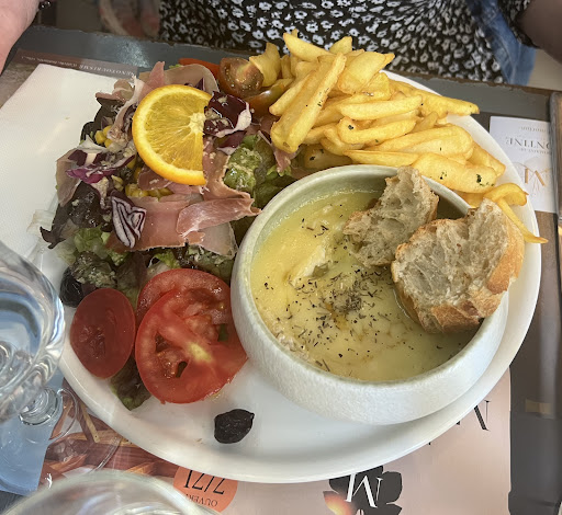 Read moreUnbelievable location with a great view of the old church and in the charming city centre - We had the menu at 33 euros which has a large choice of different dishes such as mussels, meat, etc - the mussels were good and generous portion, the goat cheese salad came with small raviole that were quite hard and under cooked otherwise the salad was nice and the Camembert salad.. was the same salad with melted Camembert - tiramisu is average in my opinion with lots of biscuits and little cheese - One piece of advice: Don’t sit near the kitchen window as you get all...