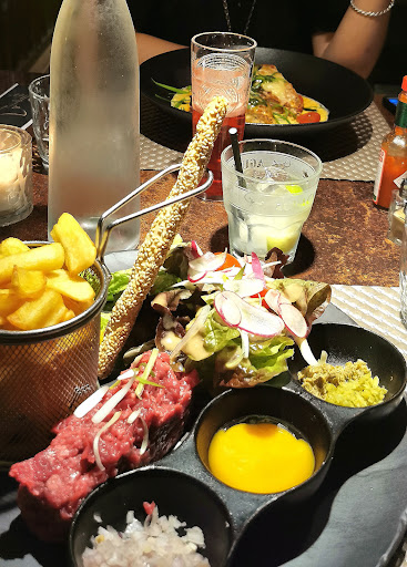 Dans l'assiette, c'est bon et copieux. Cependant quelques déceptions, la sauce crémeuse et un peu fade avec les lasagnes qui elles sont délicieuses. Le tartare au couteau, il en existe 2 sur la carte, j'ai pris le simple boeuf. Là aussi même pour le 180g c'est copieux. La viande est bonne et bien coupée au couteau. Par contre, les frites étaient tièdes, limite froide. Mais je regrette que pour le tartare, capres, oeuf, cornichons, sont séparés, c'est à nous de préparer le tartare avec les sauces. Le chef devrait assumer un parti pris et proposer sa version. Si c'est pour cuisiner, je le fais moi même à la maison, je ne vais pas au restaurant.