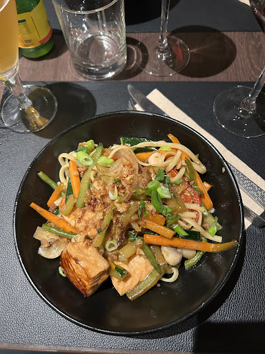 Vis à vis des commentaires, très déçu par cet arrêt. On sent que les propriétaires ne sont pas du métier. Ok rapport qualité/prix cela semble très correct sur l’ardoise : plat du jour avec dessert pour moins de 16€ très bien. Le plat du jour nous donnait envie. Mais au moment de la commande, la patronne nous dit qu’elle n’en a plus. Ok une dizaine de personnes dans le restaurant, ils ont du tous prendre le plat du jour. Soit. Mais du coup obligé de faire son choix à la carte et l’addition ne sera pas la même. Nous avons pris deux salades de chèvres au miel. Déçu une deuxième fois, car salade très simple comme si je l’avais faite à la maison (une tomate coupée en 4, un champignon de paris en lamelle, des toasts de chèvre pas assez gratinés et sans trop de miel, et comme d’habitude trop de sauce vinaigrette sur la salade). S’il vous plaît arrêter de faire baigner vos salades dans de la vinaigrette. Un filet d’huile d’olive, une crème de vinaigre balsamique et votre salade sera bien meilleure. Bon point par contre pour le menu enfant des beaux morceaux de poulet panés, d’habitude ce sont les nuggets industriels qui sont proposés. Donc bravo. Point négatif par contre, la glace du menu enfant servie dans une mini coupelle faisant juste la taille d’une petite boule…. Vous pouvez être un poil plus généreux. Autre point négatif, la salle intérieur, alors j’imagine qu’ils ont utilisé les tables pour mettre à l extérieur, mais de là à avoir une salle vide, qui sert de cave …. Ça présente mal. Les casiers de bouteilles, bières, sodas en plein milieu de la salle. Cele ne donne pas une bonne image au...