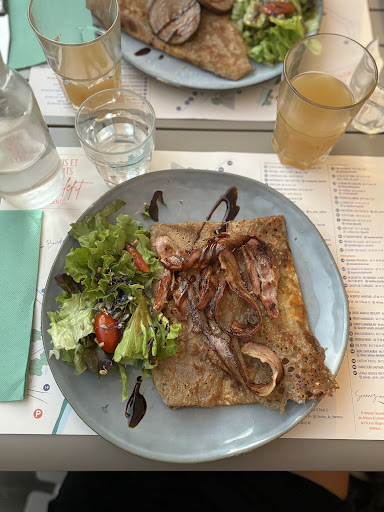 Read moreNous y sommes allés diner vendredi soir. Petite salle conviviale d'où on aperçoit le chef préparer les galettes et crêpes. Celles-ci étaient parfaites. Fort surpris d'avoir eu en accompagnement de nos galettes une belle petite salade verte bien assaisonnée et garnies de petits graines et fleurs bleues. Et nos bolets de cidre étaient très bons. Excellent rapport qualité prix plaisir. La jeune serveuse était également très attentionnée et polie. Une belle surprise....