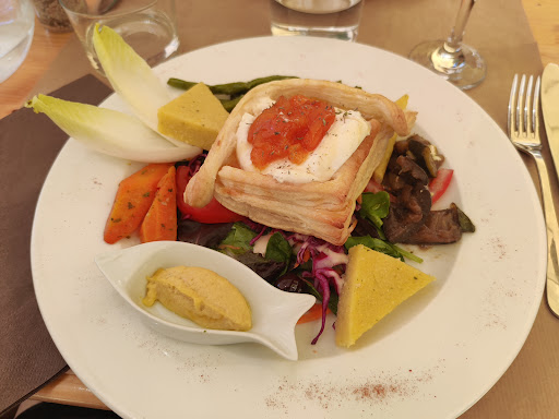 Read moreExcellent repas ! ! Une adresse locale Ă recommander. Une cuisine faite maison & un service irrĂ©prochable ! Nous avons pris 2 des 3 plats du jour : FeuilletĂ© chĂšvre abricots miel (servi avec lĂ©gumes croquants et cuits) Wok poulet (servi sur nouilles) et accompagnĂ© d'une petite salade de cruditĂ©s (Voir photos) Rien Ă redire c'Ă©tait juste dĂ©licieux !! Seul point d'amĂ©lioration du repas : l'entrecĂŽte sauce cĂšpes : elle aurait mĂ©ritĂ© d'ĂȘtre dĂ©nervĂ©e pour une mĂąche plus agrĂ©able, la sauce aurait pu ĂȘtre servie sur le cĂŽtĂ© pour ne pas gĂącher la vue sur la viande, et des cĂšpes entiers auraient pu ĂȘtre ajoutĂ©s dedans (on les cherchait un peu...). Mais on pinaille car le reste Ă©tait sensas'! Les desserts notamment sont...