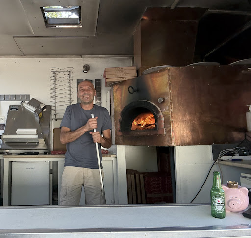 Heerlijke pizza van een foodtruck! Fluitend in de houtgestookte oven gebakken en met vriendelijke glimlach geserveerd 😀 Unieke plek,"toevallig" ontdekt tijdens onze reis door Europa. Informele en gezellige sfeer rondom.