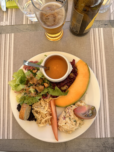 Risky to go somewhere with only one warm meal and I wasn't lucky. Almost 30€ for a loaf of lamb meat which was decent but not great with heavily overcooked beans as the side dish. It's probably my individual bad luck strongly disliking garlic that I had to leave the pesto with loads of garlic (according to my friend's assessment) filled into a cooked tomatoe on the plate although garlic wasn't mentioned in the meal's description. Overall: very disappointing even if it only was for the price-performance ratio.