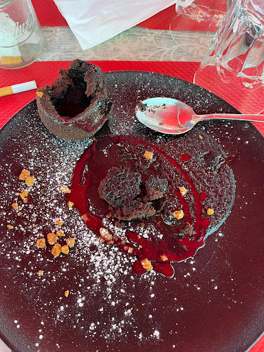Fondant au chocolat surgelée ça m’abere que de nos jour l’on serve encore des fondant surgelée qui plus est le cuisto n’a pas prit la peine de le faire chauffer un petit coup au micro onde non non il l’a laisser décongeler à l’air libre le fondant arrive je le goûte il était glacée !! Dans ce cas là notez sur votre carte fondant au chocolat givrée ! Un trait d’humour ça fait pas de mal !