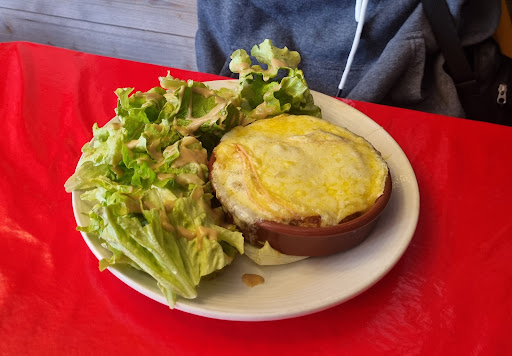 Côté cuisine : si vous restez local vous ne serez pas déçu : charcuterie fromage. Nous avions pris une fondue pyrénéenne qui était très bonne. Les burgers servis sur d’autres tables avaient également l’air très bons même si les prix jusqu’à 27-28€ le burger me paraissent prohibitifs. Par contre gros bémol et grosse déception pour le reste. L’assiette mix tapas bien que bonne ne semblait pas faite maison, quant aux desserts… 😱 le seul dessert du jour, une part de flan (que j’espère maison) était à 8€ la part, la glace était industrielle (pourquoi pas) mais même la crêpe et le coulis de chocolat tout était industriel ! Ça termine mal le repas.