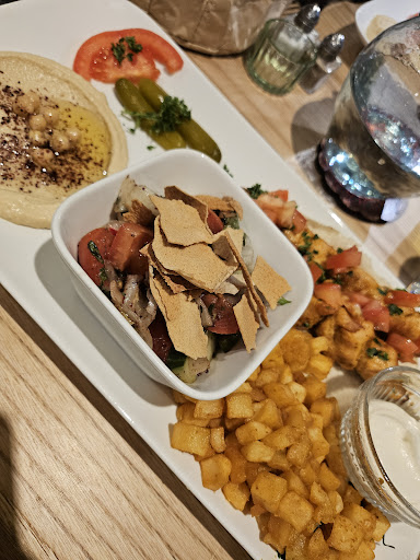Read moreExpérience décevante. Nous avions réservé pour deux personnes et on nous a placés à côté de la porte, restée ouverte malgré le froid. Lorsque nous l’avons fermée, le gérant est venu la rouvrir, ce qui a rendu le repas très désagréable. J’ai commandé une assiette de shawarma poulet : les quantités étaient vraiment minimes et les batata harra semblaient simplement réchauffées dans une friteuse à air. Mon amie avait choisi une assiette de grillades, mais les brochettes étaient cuites à la poêle, sans saveur authentique. Quant au pain, il paraissait sec et de la veille. Globalement, une très...
