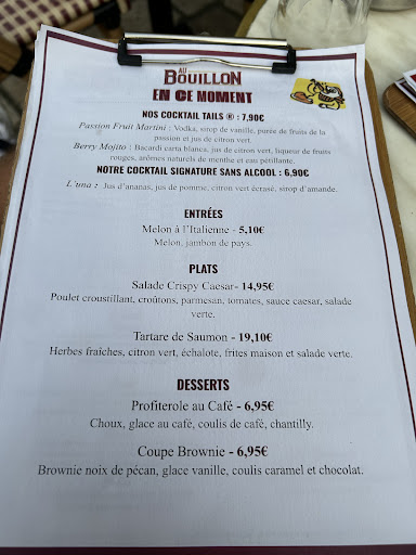 Avant ce qui était bien au Bouillon c'est qu'ils renouvelaient très souvent la carte c'est aussi pour ça qu'on venait sauf que la carte est la même depuis janvier.. juste la carte du moment en première page qui est renouvelée, cest un peu dommage a force on ne sait plus...