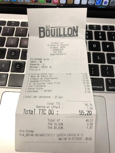 Read moreNous venons régulièrement au Bouillon depuis 2 ans et demi avec mon conjoint, nous étions assez ravis du Bouillon jusqu'à présent.