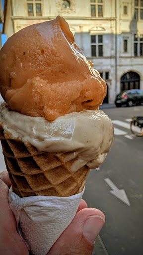 Mon époux et moi-même sommes déjà des clients assidus. Il faut dire qu'on est toujours bien accueillis, par une patronne souriante et ses apprentis pleins de bonnes volontés. On trouve sur la carte les classiques (vanille, chocolat, café, fraise...) sublimés par d'excellents produits et, pour les amateurs, on trouve aussi des parfums plus originaux et tout aussi délicieux (lichi-rose fait partie de mes favoris, framboise/poivrons pour un mariage étonnant et pourtant réussi, etc.). Chantilly maison et sa pointe de vanille, pour les plus gourmands. Du coup, dès qu'on a des invités et qu'on se demande : "Que faire sur Orléans ?", c'est simple. Un p'ti tour à la cathédrale et ça finit chez B. Glacier. Tout le monde est heureux, surtout nous, qui prendrions n'importe quel prétexte pour goûter l'intégralité de la carte dans une ambiance intimiste. Le tout, évidemment, avec un rapport qualité/prix indétrônable.