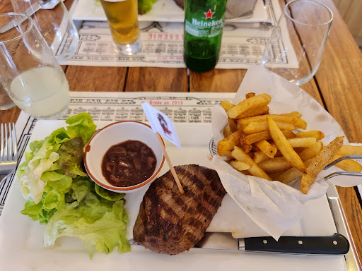 Read moreL'accueil m'a paru très froid. Lorsque nous sommes arrivés a 19h nous arrivions juste à l'ouverture et nous avons senti que c'était juste. Avec une petite fille de 2 ans qui avait faim c'était difficile de faire mieux. On nous a installé sur une table de 2 avec une chaise supplémentaire. J'ai trouvé que c'était un peu juste mais avec un tout petit, possible, donc nous avons accepté. Nous avons vite compris que c'était la norme lorsque l'on est 3. Nous avons d'ailleurs assisté à la scène décrite par la dame dans le commentaire précédant. Sans les regardant, la serveuse a dit je vous en installe une de trois et a refusé qu'ils s'installent sur une table de 4. Table qui est restée vide et franchement la terrasse n'était pas comble, nous n'avons donc pas compris ce refus. Au final mon mari qui me trouvait négative sur l'accueil au départ m'a dit "tu as raison l'accueil n'est pas agréable". Personnellement c'est un monsieur qui nous a installé. Il n'était pas impoli mais pas chaleureux. C'est quand même dommage pour un restaurant. Les plats étaient bons. Dommage pour le steak enfant qui était franchement d'une qualité bien inférieure au notre (ce n'est pas parce que c'est un enfant que j'achète moins bien pour ma fille). C'est également un restaurant étique dont les bénéfices sont reversés à une fondation. C'est un beau projet qui...