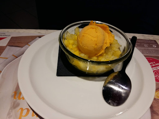 Read moreExpérience mitigée ( comme la dernière fois que je suis venue). Je suis venue un midi, avec l’envi de manger rapidement car je reprenais le travail 1h30 après. On nous installe sur un table avec une espèce de séparation au milieu, c’est très moyen (mais pas de places ailleurs et nous n’avions pas réservée, donc c’est le jeu! Cependant cette table est assez nulle.) Je me rend compte rapidement que tout est long, alors on prévient que nous sommes un peu pressés. Les plats ont mis 40 min à arriver…. Sachant que nous étions avec un enfant, il aurait été agréable qu’ils lancent au moins son plat à lui ( il met du temps à manger). Donc on a englouti notre bavette (viande bonne mais franchement pas tendre) et notre pomme au four (un peu trop cuite) et nous sommes partis rapidement ( dommage pas le temps pour un dessert, mon fils lui a emmené sa glace du coup) Les serveuses ont été tout à fait charmantes et faisaient leur possible. On ressent beaucoup de bonne volonté à faire les choses, mais ça ne fonctionne pas et...