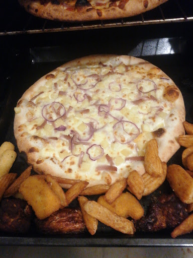 La pâte est délicieuse, rien à dire. Ayant adoré votre pizza Miel, je décide d'en recommander une barbecue. Avec les ingrédients qui la composent, ça donne envie. Livraison nickel, au top. Je décide même de laisser la monnaie pour le bon service. Mais finalement je reste déçue par la barbecue car vous précisez qu'il y a du poulet dans celle-ci et je retrouve une pizza avec un pâté de chair blanche qui n'a pas le goût de poulet... Je ne suis vraiment pas difficile mais je n'ai pas réussi à terminer une part... Heureusement que j'ai pris des chicken wings à côté qui ont fait...