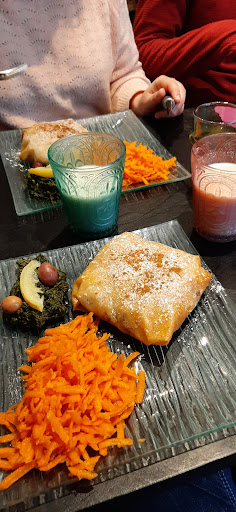 Petit café très sympathique. Nous sommes venus avec des amis pour le brunch du dimanche. Le thème était le maroc. Le brunch était vraiment délicieux. Il était composé : 1 verre de lait d'amande (très épais, bien crémeux, vraiment bon, nettement supérieur à ceux du commerce) 2 verre de thé à la menthe (1 verre avec l'assiette salée et 1 verre avec l'assiette sucrée) (très peu sucrée, mais bien infusé) l'assiette salé se composant de : ~ salade d'épinards avec son citron confit ~ salade de carottes, jus d'orange et paprika ~ une brique dont malheureusement je ne me rappelle plus le nom exacte, avec à l'intérieur du poulet et des amandes frites. Un énorme coup de coeur pour la brique. Il y avait une quantite d'amande incroyable et le goût était divin ! l'assiette sucrée se composant de : ~ un petit gateau noix de coco ~ une sorte de crêpe/pancake tellement imbibé de miel que j'ai voulu lécher mon assiette à la fin ~ une feuille de brique frite fourrée d'une purée d'amandes crues et d'amandes frites hachées le tout imbibé dans le miel par la suite. Mon coup de coeur des desserts ! Absolument incroyable j'en ai acheté en quittant le brunch pour en ramener à une amie.