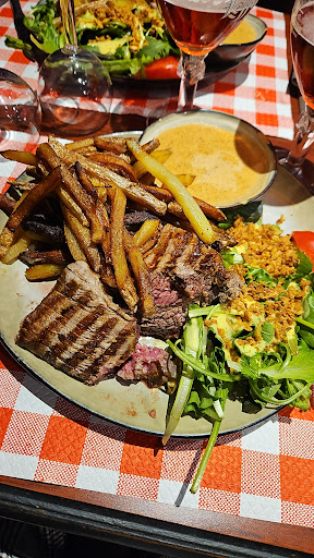 Aucun sourire, une serveuse très mal aimable tenant des propos plus que limites envers les clients ! Patron et patronne qui s'engeulent derrière le bar. Le papi en aide au bar mais qui ne sait même pas servir une bière et qui dit "quand on est pas payé on peut pas être parfait" L'enfant de la famille 15 ans à peine qui fait de son mieux mais qui gère mieux que les propres patron ! 1h00 d'Attente avec deux enfants affamés. Frites arrivées ....15min d'attente pour la viande "pas cuite" ! Le cuisinier "patron" se déplace pour nous demander le problème ? Au final ils nous à virés du restaurant comme dès malpropres en criant comme un fou devant nos enfants.