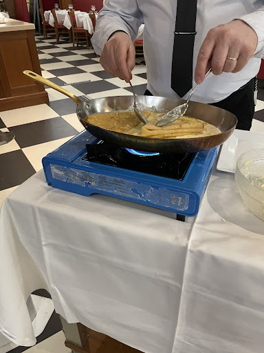 This restaurant was recommended by my hotel and I must say it was not a good recommendation. The food was all mediocre. It’s in a nice area where the statue of Joan of ark is but other than that that’s about the extent of it. I had the 29.90€ two course dinner which was very small portions. The best thing I had was Barata cheese. The sea bream was as small as it can get and not very tasty. The snails were good. The meat dish was small and tough indoor outdoor seating. The waiter was just OK. He couldn’t really speak English. Very slow service They do have English menus so that was helpful. This would not be high on my...