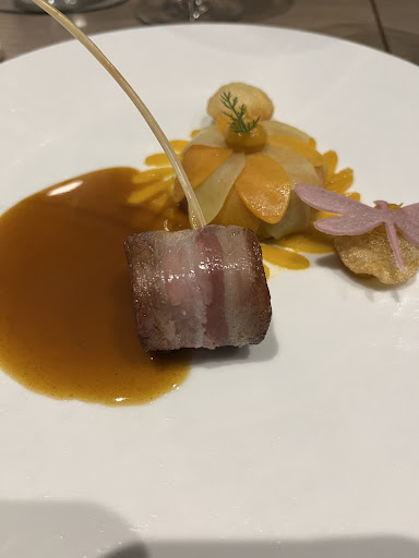 Mauvaise pioche. Invité pour mon anniversaire, je me faisais une joie de venir dans cet établissement de qualité. Malheureusement pour moi, ce fut un mauvais jour. 1- Le sommelier nous demande ce que nous aimons comme comme vin mais qui ne tiendra pas compte du fait que nous n'aimons pas les vins blancs prétextant que dans ce cas il sera difficile pour lui de nous satisfaire. -Le decors est posé- Ce menu 6 services et accord de vins prestige proposé à 213€ (évidemment sans les apéritifs, sans l'eau, sans les fromages, sans les cafés...) sera composé de 4 verres de vins blancs sur les 6 servis. On se sent vraiment écouté 😭