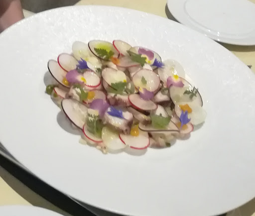 Alors que nous souhaitons découvrir ce restaurant et savourer au calme, cette serveuse vient raconter sa vie à la table derrière nous, sans se soucier du bien être du client, sans se soucier de la discrétion qu’exige un tel lieu, alors que les cuisiniers viennent aussi échanger avec les clients de cette table en toute discrétion, en faisant attention de ne pas nous importuner. Un autre exemple ? L’apprenti serveur nous apporte des mises en bouche par erreur, alors que nous en avions déjà eu auparavant. Cette même serveuse vient aussitôt retirer ces mises en bouche, rien d’anormal ici, sans excuse, limite avec brutalité, avec un mot du style « vous avez déjà eu ça ». C’était irrespectueux et indigne du standing qu’exige ce restaurant gastronomique.