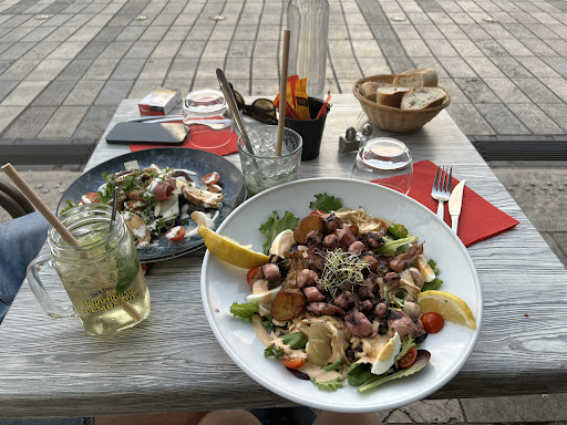 Read moreAprès la lecture d’énormément d’avis négatif, je n’étais pas trop emballée. Et bien, j’ai eu tort. J’ai été agréablement surprise. Le virgin mojito commandé était bon, malgré un fort abus sur le citron. En plat, j’ai pris la salade de poulpe. Qui était copieusement garnie et véritablement très bonne. J’ai ensuite pris une banana split en dessert. Qui a elle aussi était excellente. Quant à mon ami, il avait pris un verre de Jack Daniels (légèrement trop d’alcool, mais la boisson était très bonne). En entrée, il a pris une petite salade Caesar qu’il a apprécié. Et en plat, c’était une bavette. Il s’est régalé. Je ne peux que vous conseiller cet endroit. De plus, l’équipe de serveurs présents le soir où nous y sommes allés était très souriante et très sympathique. Que cela soit le serveur derrière le comptoir que les serveurs présents dans la salle et sur la terrasse que le serveur s’étant occupée de...