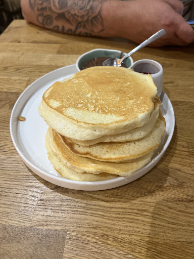 Surtout, il n’y a plus : de gâteau maison, de granola (ni fruit frais, ni chocolat), plus de JUS D’ORANGE (je rappelle que nous sommes arrivés à 11h50), ni de jus de pomme. On se rabat sur plus de pancakes et œufs, qui sont bons mais pas transcendants (et le sirop d’érable est compté…). Les œufs brouillés était en réalité cuit comme une omelette.
