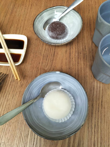 Et quand sont arrivés les sushis déjà c'était magnifique rien qu'à l'oeil et alors en bouche... le choc ! Délicieux, fins, frais et fondant en bouche. Une première de voir des beaux morceaux de saumon et de thon et de crevettes bien plus présents que le riz et croyez-moi ça fait toute la différence au niveau du goût et du sentiment de satiété. Les gyoza aussi étaient excellents. Point très appréciable : le serveur qui nous a demandé dans quel ordre on voulait être servi (sushi avant ou après gyoza). Mochi glacé de bonne qualité bien qu'il manquait certains goûts annoncés sur la carte mais là encore le serveur nous en a informé à l'avance.