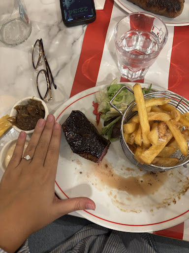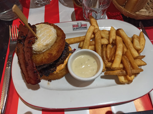 Read moreSoirée de Saint Valentin, nous avions réservé à 20h. Nous sommes arrivés à 19h55 et nous avons été pris en charge rapidement. Nous avons pris la plus grosse formule. En commençant par l'entrée, j'ai pris le bloc de fois gras. N'ayant pas assez de pain, mon conjoint a demandé à un serveur si c'était possible d'en avoir. À ce moment là il était 20h20. Nous avons attendu 20 minutes (en prenant en compte que nous avions redemandé à quelqu'un d'autre entre temps) pour du pain. Les entrées finies à 20h50, nous avons pris en plat un burger et un pavé de bœuf. Plus de 30 minutes d'attente. Le restaurant commençait à se vider petit à petit. Nous avons eu nos plats vers 21h25. Nous avions une séance de cinéma à 21h45 (nous pensions qu'en 1h45 de repas, nous aurions largement le temps). Alors manger son pavé de bœuf, accompagné de frites, en 20 minutes... Il y avait un dessert dans la formule. Nous n'avions pas le temps pour les manger. Une des serveuses est venue nous voir en nous disant que pour Monsieur, le dessert peut être retiré de la formule. En revanche pour moi, ayant pris un bloc de fois gras, je devais payer la formule complète, bien que je n'ai pas pris de dessert. Arrivée à la caisse, mon conjoint a bien précisé que nous n'avions pas pris de dessert par manque de temps. Nous avons été décompté des desserts. Un conseil : si vous voulez passez un bon moment, pensez à y rester 4 bonnes heures... Petit bémol : le service est assez original car pour chaque pourboire reçu, ils ont une sorte de cri de joie. J'ai beaucoup...