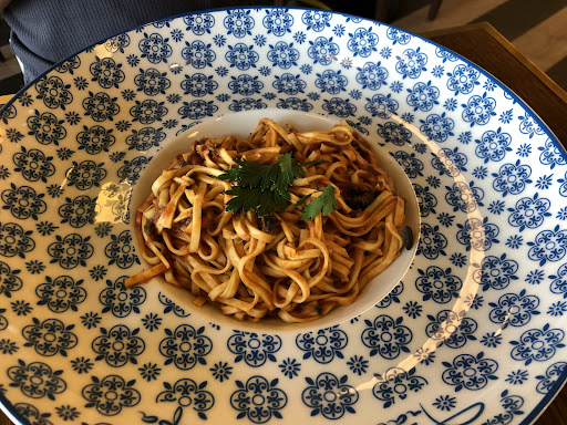 We ordered a pasta with olives and anchovy, which was too salty and dry.